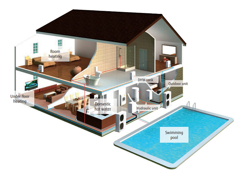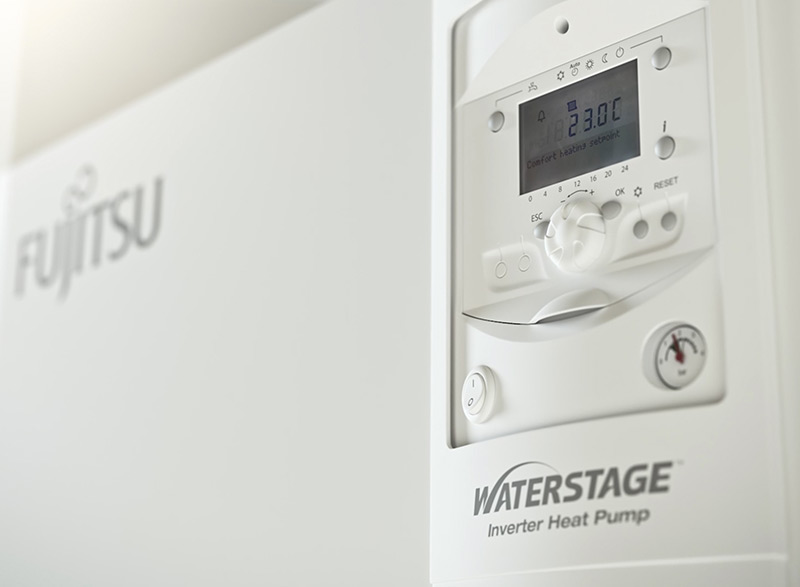 A Fujitsu Waterstage levegő-víz hőszivattyú rendszer jellemzője, hogy ugyanúgy tervezhető családi házak, társasházak, kis- és közepes irodaházak, és akár középületek, fűtésére is. Az épület mellett vagy a tetején elhelyezett kis helyigényű kültéri egység gondoskodik a helyiségek hőszivattyús fűtéséről vagy hűtéséről. Mivel a kültéri egységek a szabadba telepíthetők, így nem foglalnak helyet az épületben, nincs szükség kémény építésére és az elektromos megtápláláson kívül semmilyen más energiahordozót nem igényelnek.